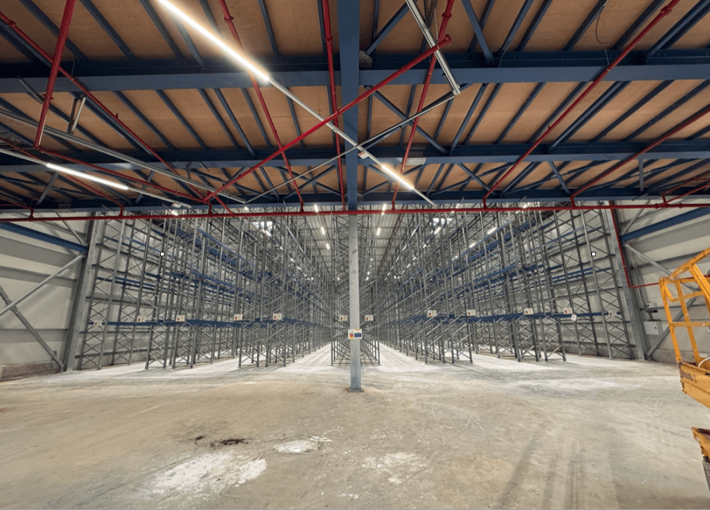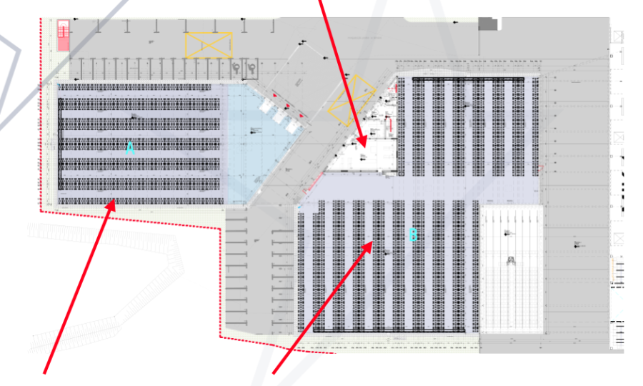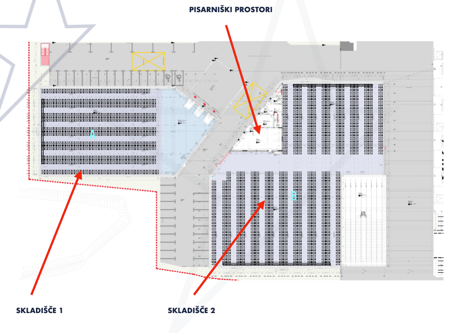 Na voljo za najem v Vojniku sta dve skladišči s skupno površino 4.210 m², zgrajeni leta 2024, z višino stropov 11 metrov, po ceni 6 €/m²/mesec. Zunanja asfaltirana površina obsega 2.500 m² in vključuje 42 parkirnih mest. Skladišči skupaj omogočata shranjevanje več kot 7.000 evro palet.