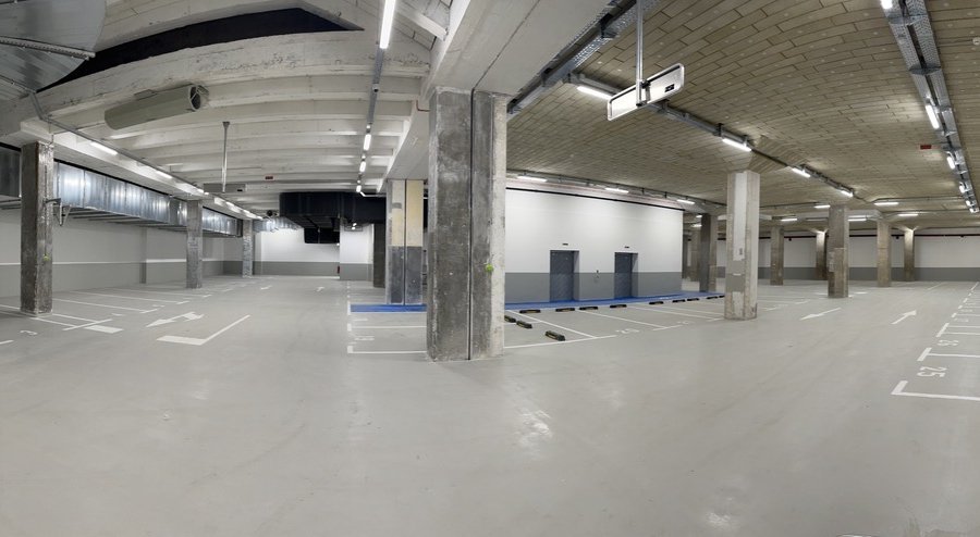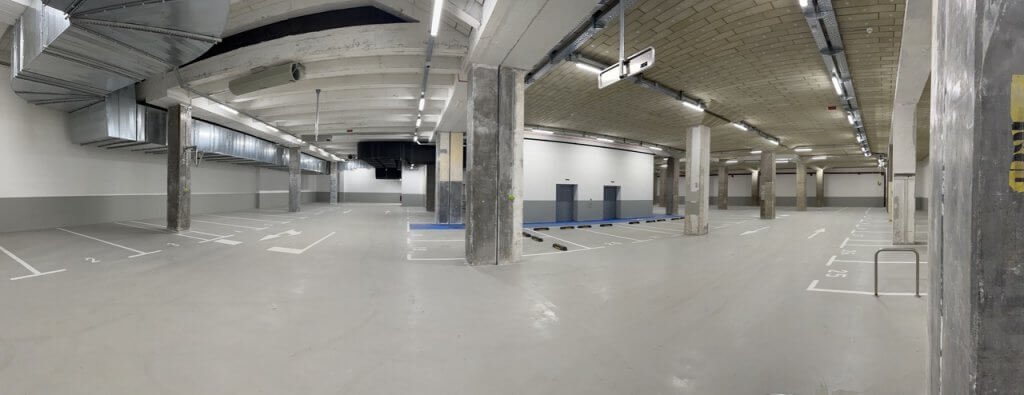 Na voljo je skupno 98 parkirnih mest v dveh podzemnih garažah, po ceni 190€/PM/mesec. Od beh je 22 dvojnih parkirnih mest (z omejenim dostopom za eno vozilo), ki so na voljo po ceni 240€/PM/mesec.