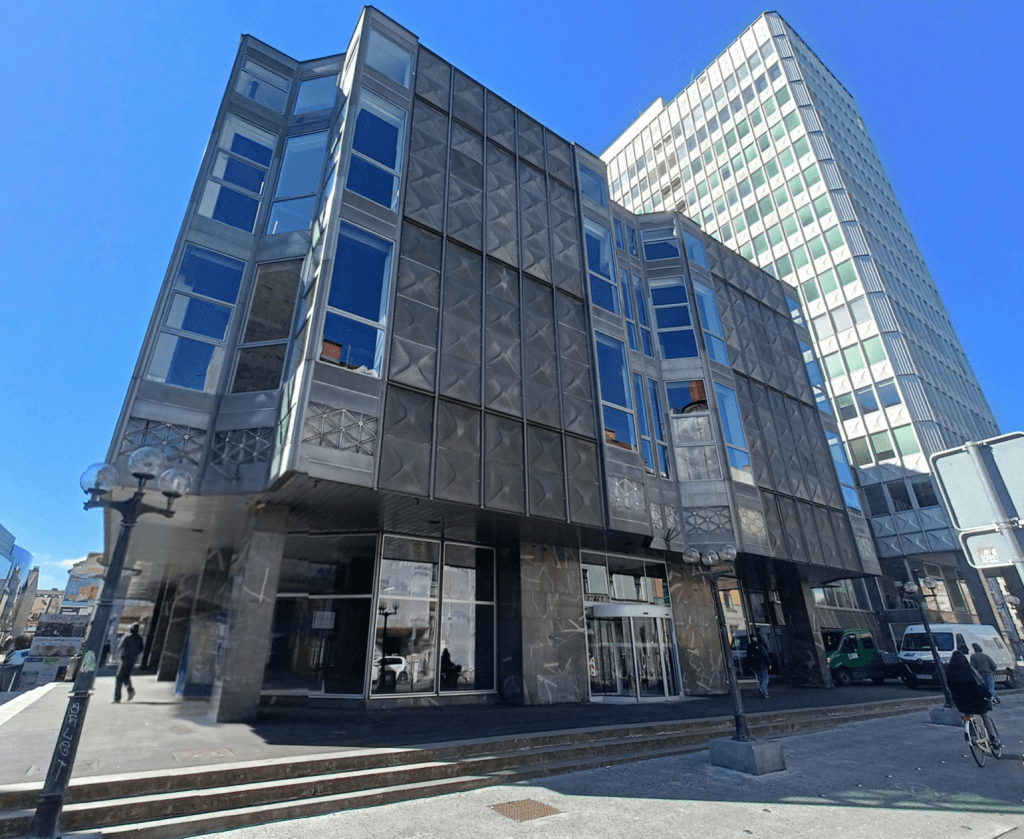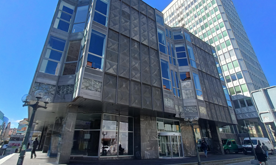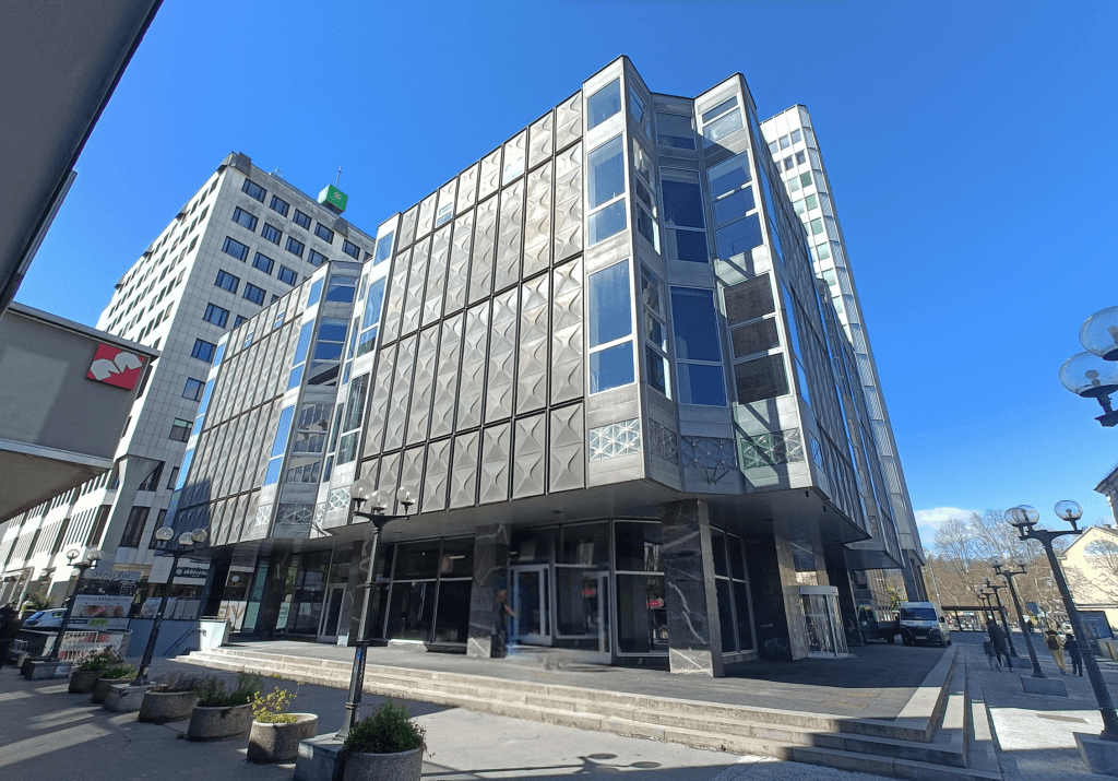 Stavba je bila zgrajena leta 1973. Prvotno je bila zasnovana kot veleblagovnica. Kasneje je bila spremenjena v poslovno, pretežno pisarniško stavbo. Nahaja se na odlični lokaciji, nudi kakovostne pisarniške prostore in veliko število parkirnih mest. Objekt je zaščiten kot kulturna dediščina, zato so ohranjene vse njegove prvotne značilnosti, vključno z marmornatimi in kamnitimi stebri in stenami ter marmornatimi tlemi.