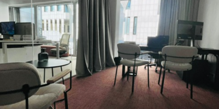 Do pisarniških prostorov in parkirnih mest v dveh garažah vodijo 3 dvigala, V neposredni bližini se nahajajo storitve izposoje koles in avtomobilov.