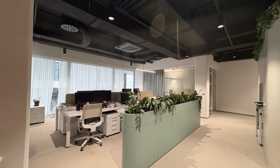 Poslovni prostori v 3. nastropju bodo dokončani in pripravljeni za vselitev do konca marca 2026.