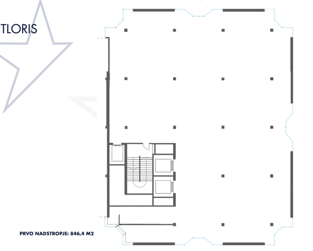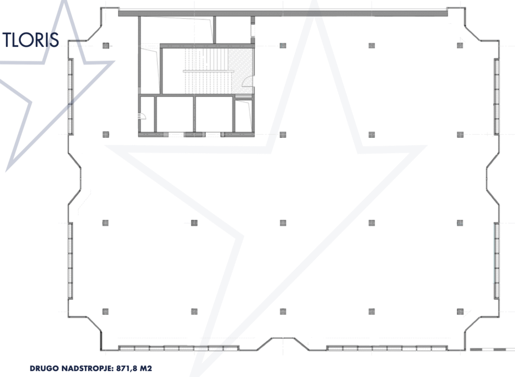 1. nadstropje meri 846,40 m2, 2. in 3. nadstropje pa vsako 871,80 m2.