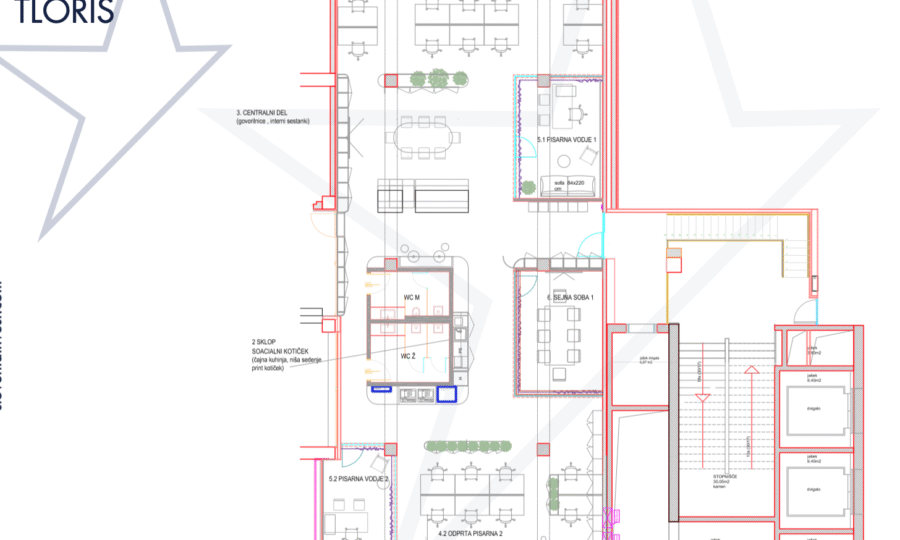 - 17 €/m2/mesec + DDV + stroški za opremljene poslovne prostore v 1., 2. in 3. nadstropju