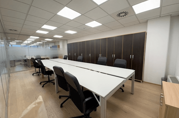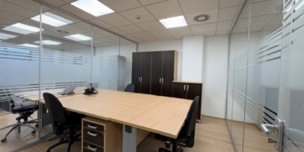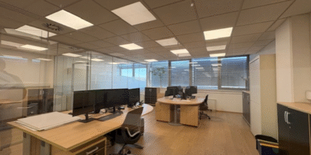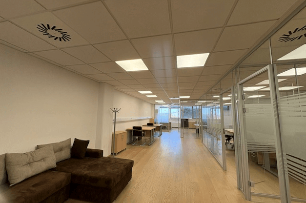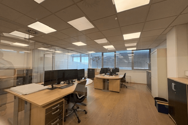 Pisarne so bile v celoti prenovljene pred 10 leti in imajo lesena tla ter steklene pregradne stene. Prostor ima talne električne vtičnice in spuščene strope. Ogrevanje in hlajenje potekata centralno. Na severni in južni strani stavbe sta dve osebni dvigali in tovorno dvigalo. Objekt je varovan z alarmnim sistemom. Gre za svetel in privlačen prostor z neoviranimi pogledi na Ljubljano.