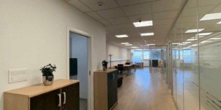 Prostor obsega dve večji pisarni, tri manjše pisarne, strežniško sobo in manjšo kuhinjo. Sanitarije (ženske in moške), ki so v vsakem nadstropju na severni in južni strani stavbe, si delijo najemniki posameznega nadstropja.