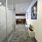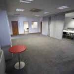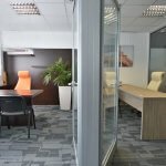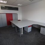 1. Poslovna enota 204,22 m2, ki zajema sprejemno pisarno, sejno sobo, veliko opremljeno pisarno, tri manjše pisarne, čajno kuhinjo ter IT sobo.