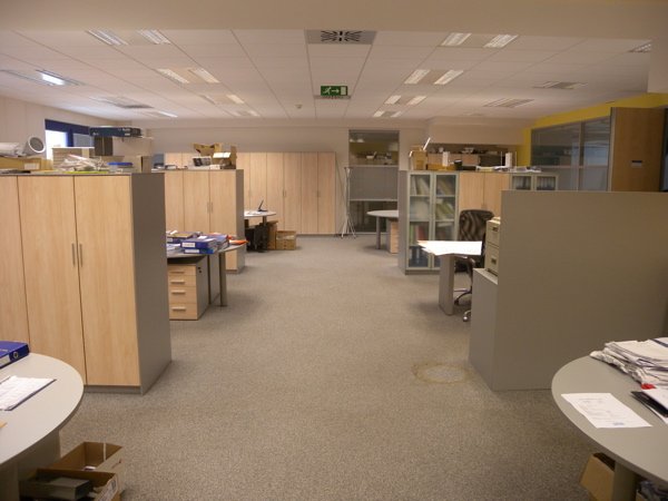 Poslovni prostori v 1. nadstropju so kompletno opremljeni z odlično ohranjenim pisarniškim pohištvom in imajo vse potrebne priključke za sodobno poslovanje, opremljene so z optičnim omrežjem, za souporabo pa so na voljo sanitarije, čajna kuhinja in sejna soba. Na voljo so sledeče pisarniške enote (neto): Najemnina za opremljeno pisarno znaša 8 €/m2/mesec. Možnost parkiranja pred vhodom in v neposredni bližini. Prostori se oddajajo za obdobje 11 mesecev z možnostjo podaljšanja.