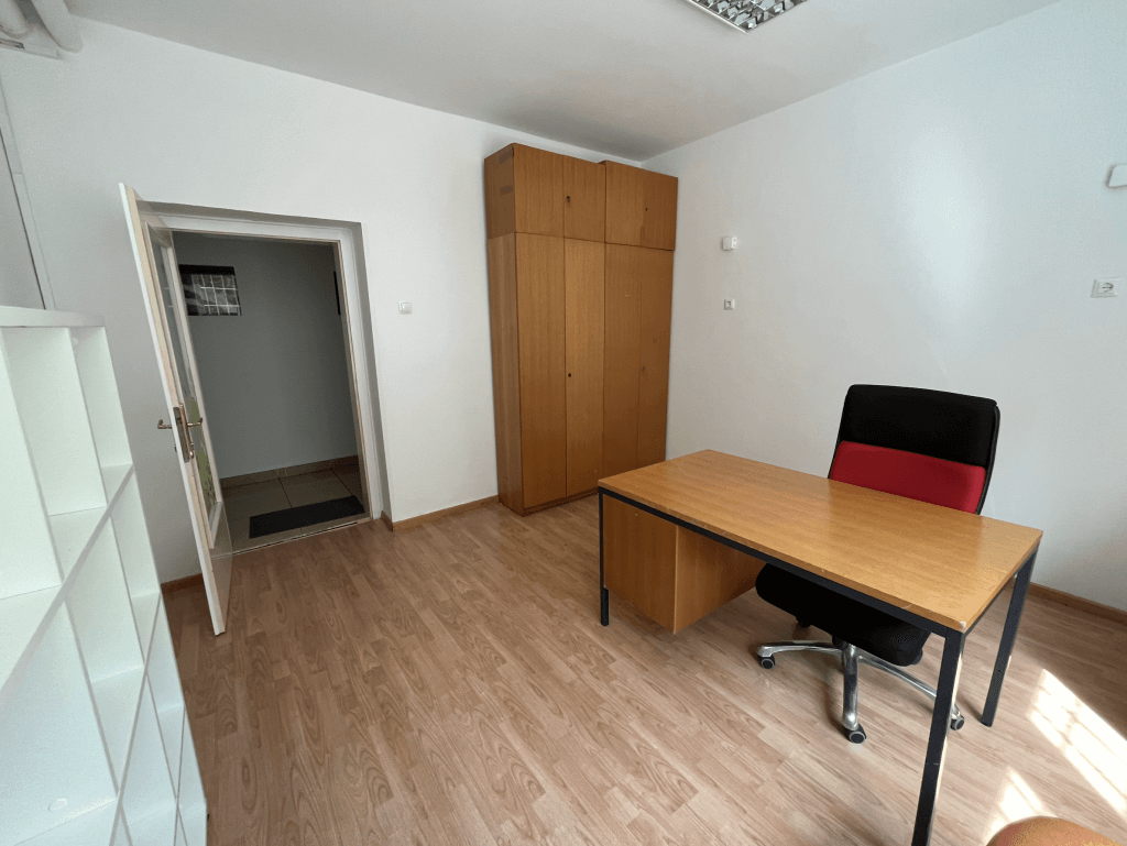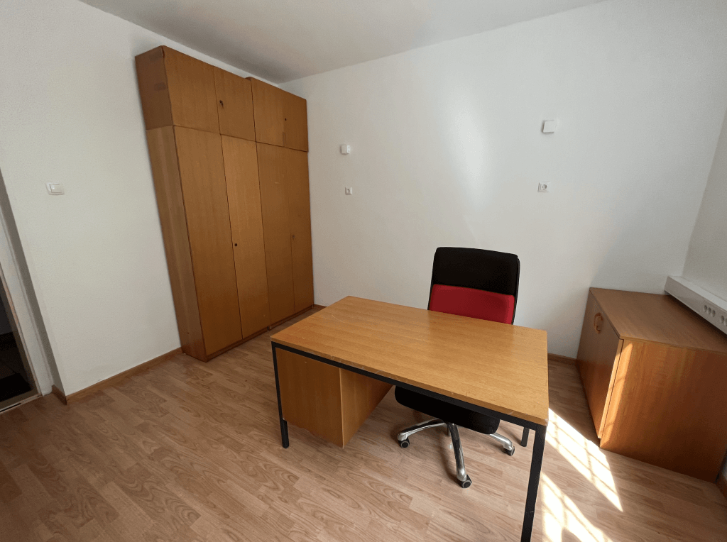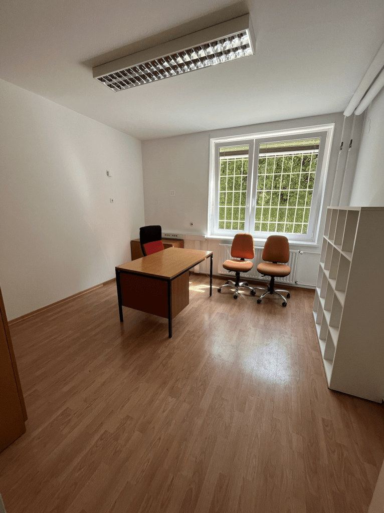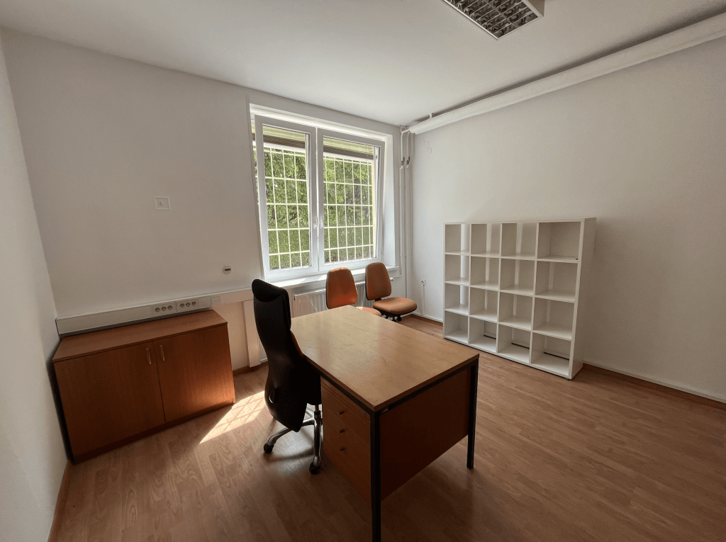 Na voljo za najem je manjši pisarniški poslovni prostor v pritličju v velikosti 15 m2. Najemniki v pritličju imajo skupne sanitarije. Iz vseh pisarn se odpirajo lepi razgledi na okolico.