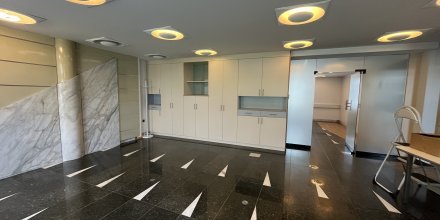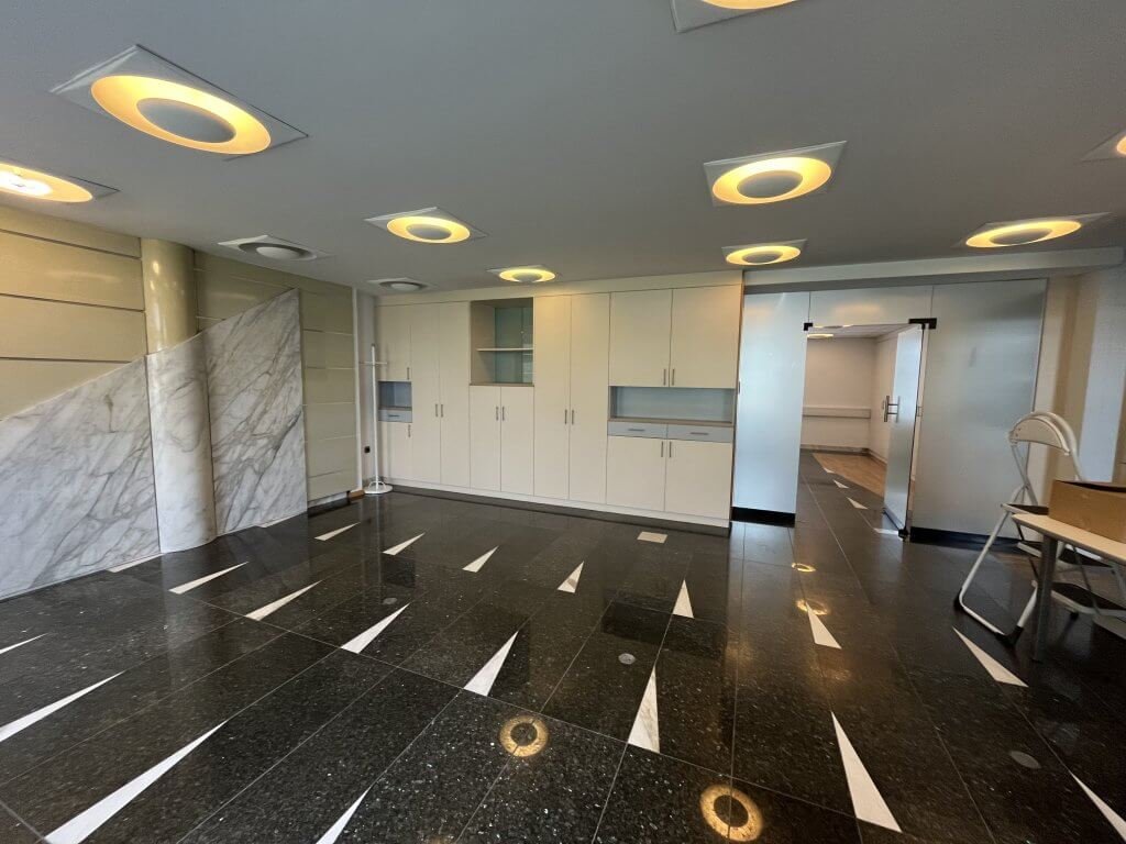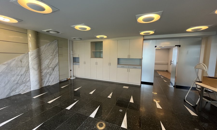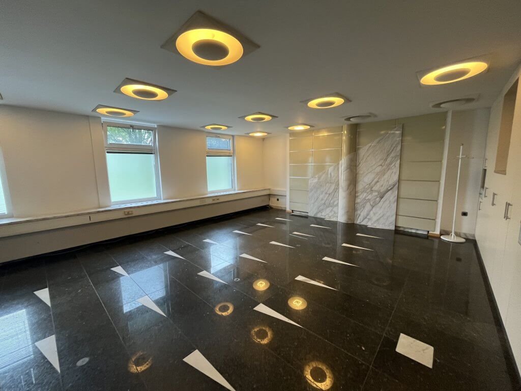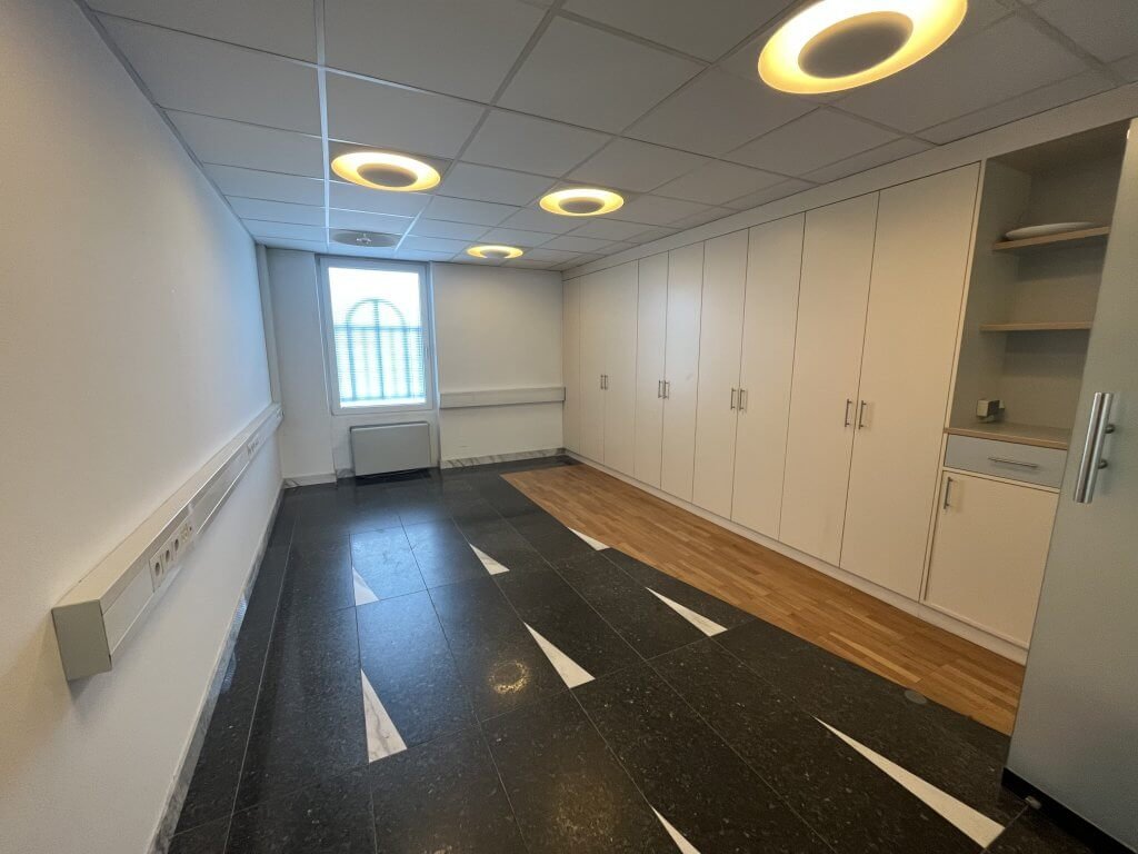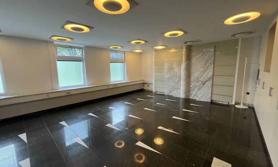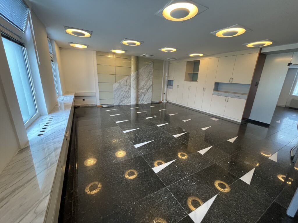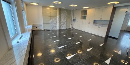 Poslovni prostori se nahajajo v pritličju in obsegajo eno večjo in dve manjši pisarni ter lastne toaletne prostore. Po tleh je kamen. Ponekod so v kamnu tudi okenske police in detaili na stenah. Prostori se oddajajo delno opremljeni – v prostorih so le vgradne omare.