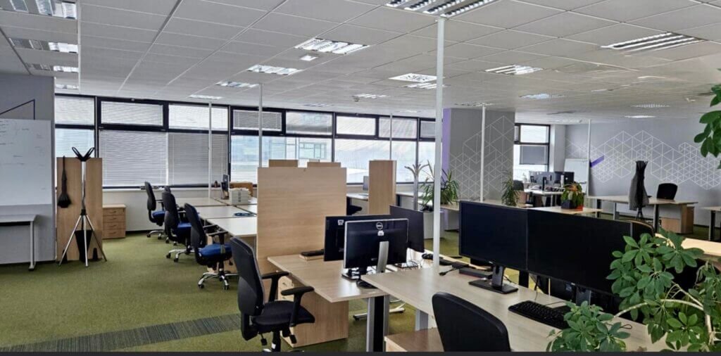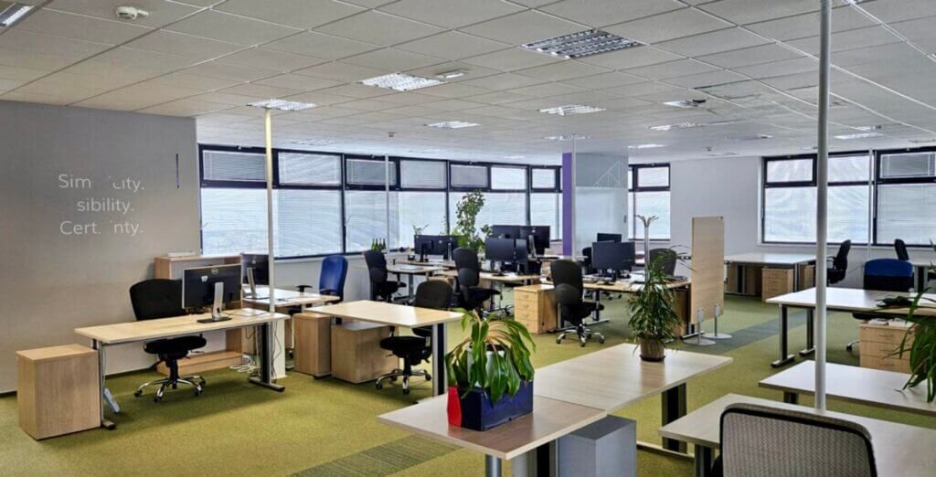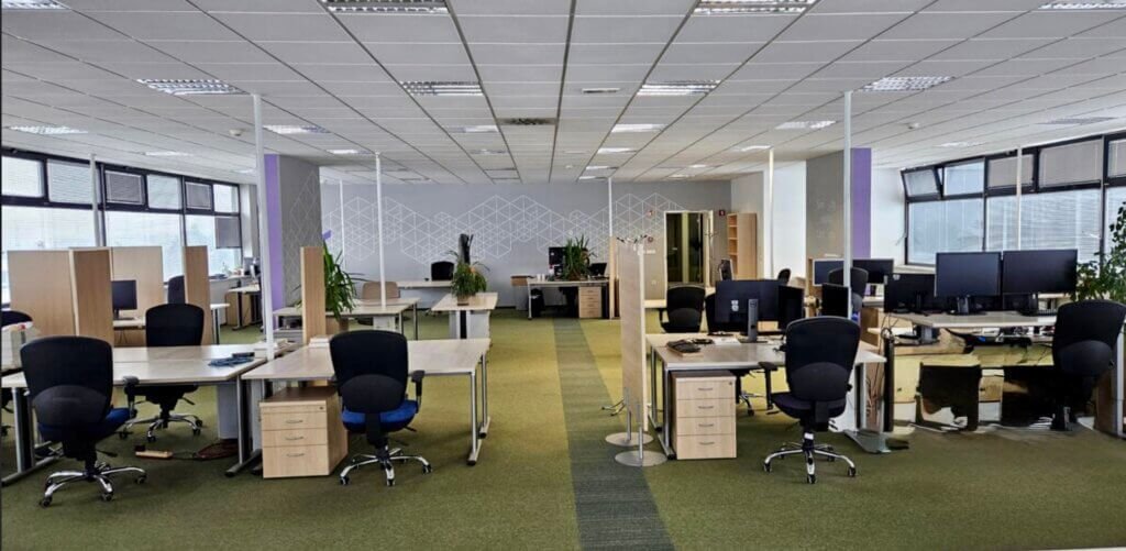 Poslovni prostor obsega 280 m², od tega predstavlja odprta (»open space«) pisarna 231 m² z obilico naravne svetlobe (orientacija jug, zahod in sever). Poleg tega vključuje še ločen prostor v velikosti 9 m², ki je primeren za čajno kuhinjo, dodatno pisarno, arhiv ali skladišče. Preostali del zajema sanitarije (M/Ž) ter hodnik.
