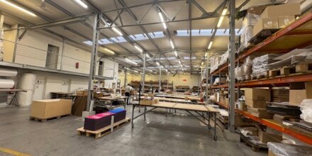 Skladišče je ogrevano na plin in ima prezračevanje. Pisarna je ogrevana s talnim ogrevanjem na plin. Objekt je priključen na vodovod, kanalizacijo, električno omrežje in visokohitrostni internet. Javni prevoz je na voljo na avtobusnem postajališču, oddaljenem 4 minute hoje.