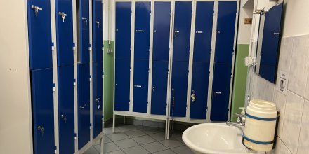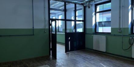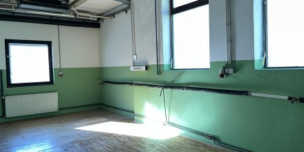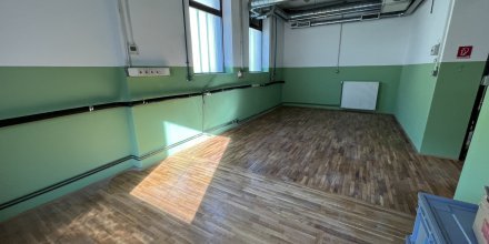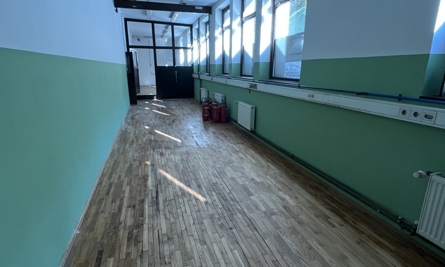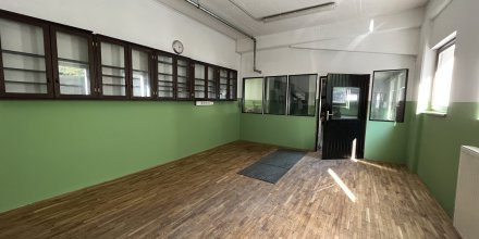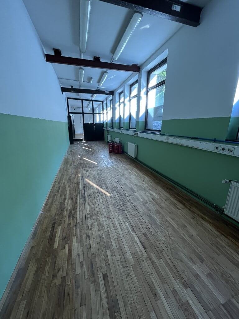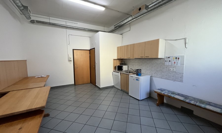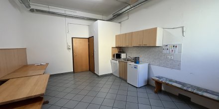 V prostoru je garderoba, kuhinja z jedilnico, v primeru delitve prostora je možna souporaba obstoječe kuhinje ali izdelava še ene kuhinje. V prostoru so na voljo toaletni prostori (2xŽ/2xM9) in ena tuš kabina.