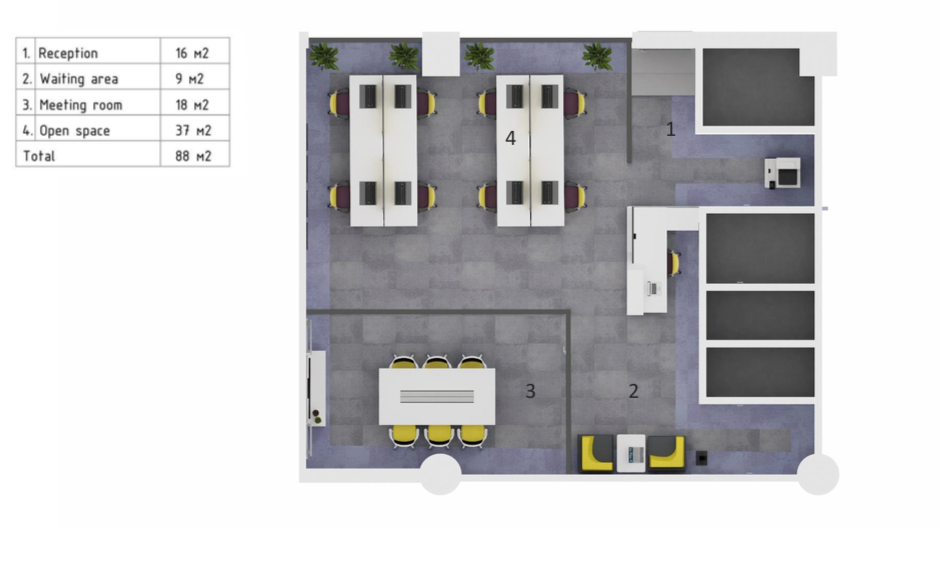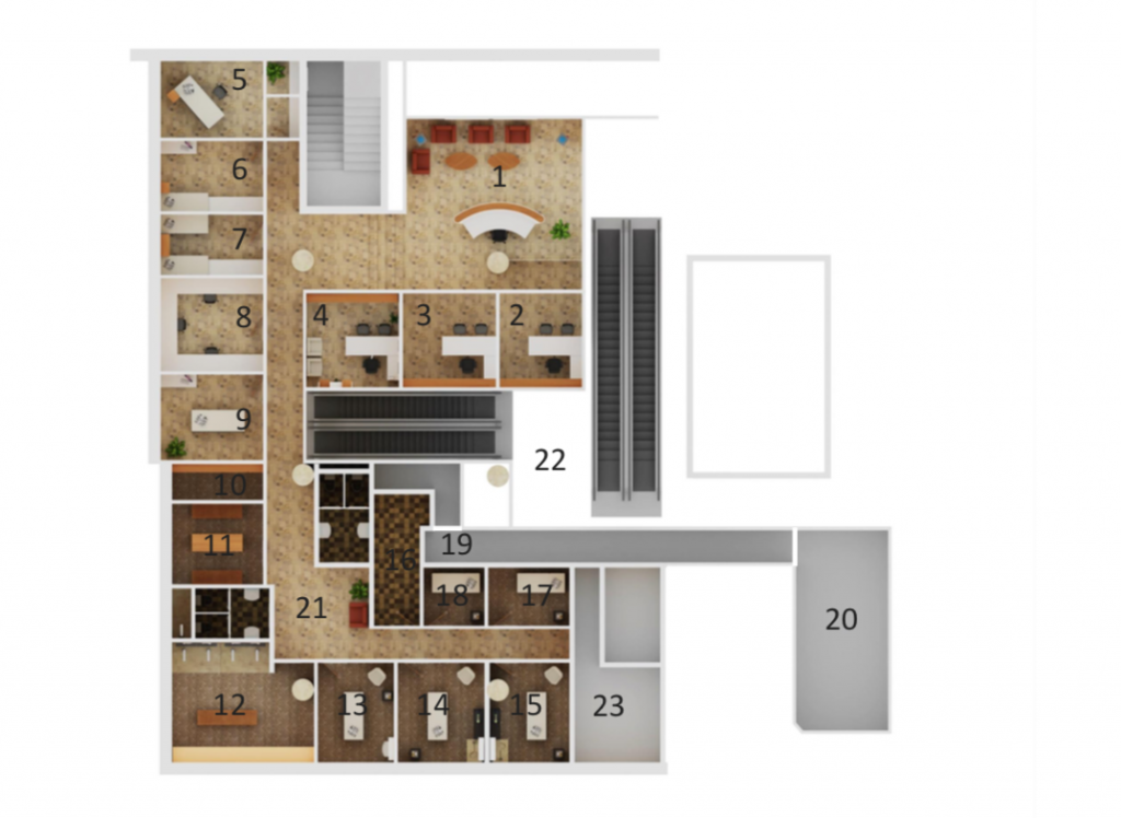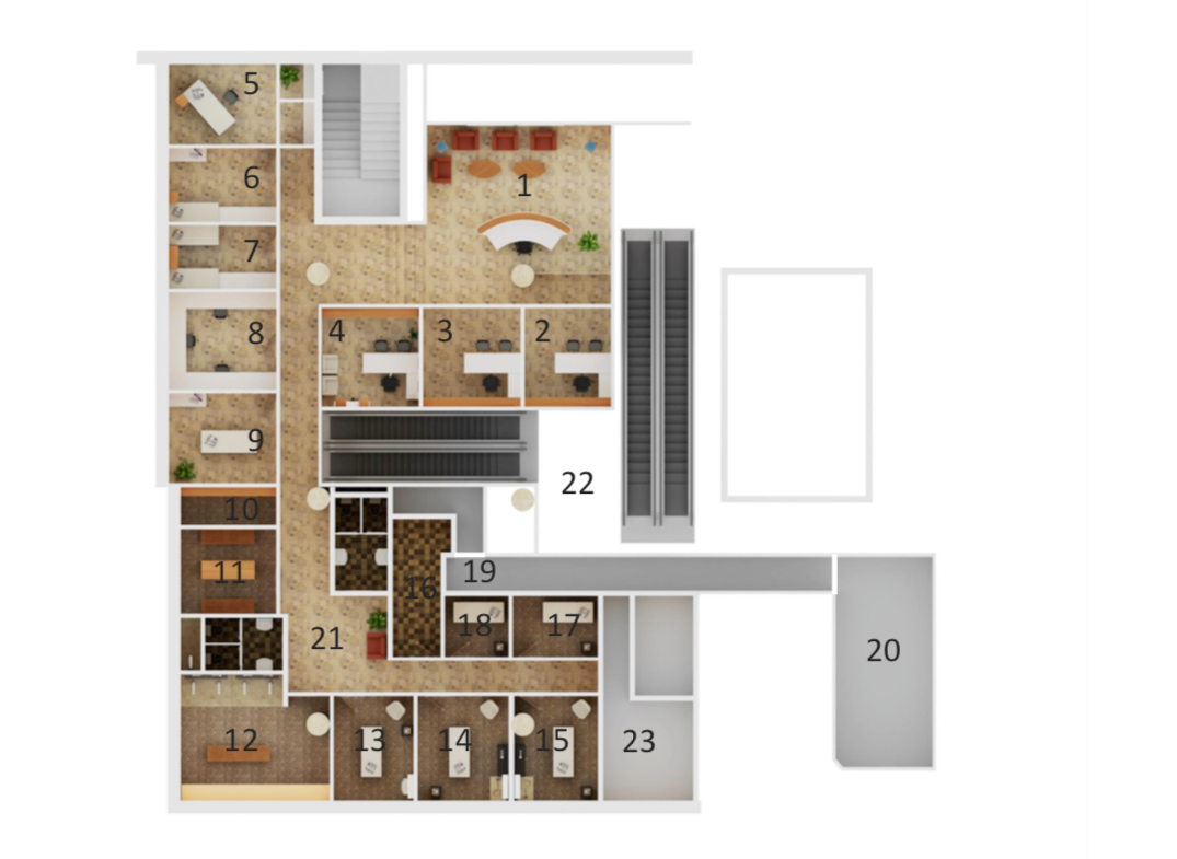 Poslovni prostori se nahajajo v pritličju in 1. Kleti v Hotelu Austria Trend Ljubljana, ki je bil zgrajen leta 2004. Stavba se nahaja tik ob Dunajski cesti in omogoča hiter dostop do mestnega središča in izhoda na obvoznico. V neposredni bližini so na voljo različne trgovine, pošta, lokali, restavracije, zavarovalnica in banka.