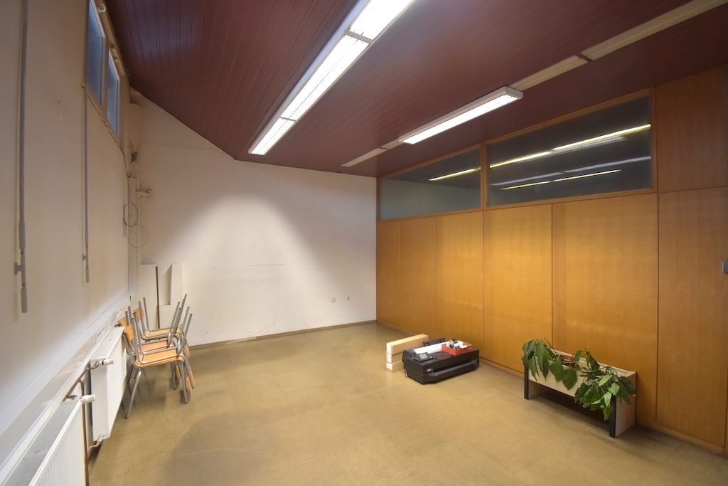 V 1. nadstropju stavbe so poslovni prostori primerni za pisarniško dejavnost. Sanitarije so skupne v nadstropju za vse najemnike.