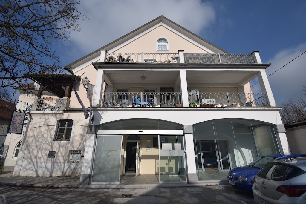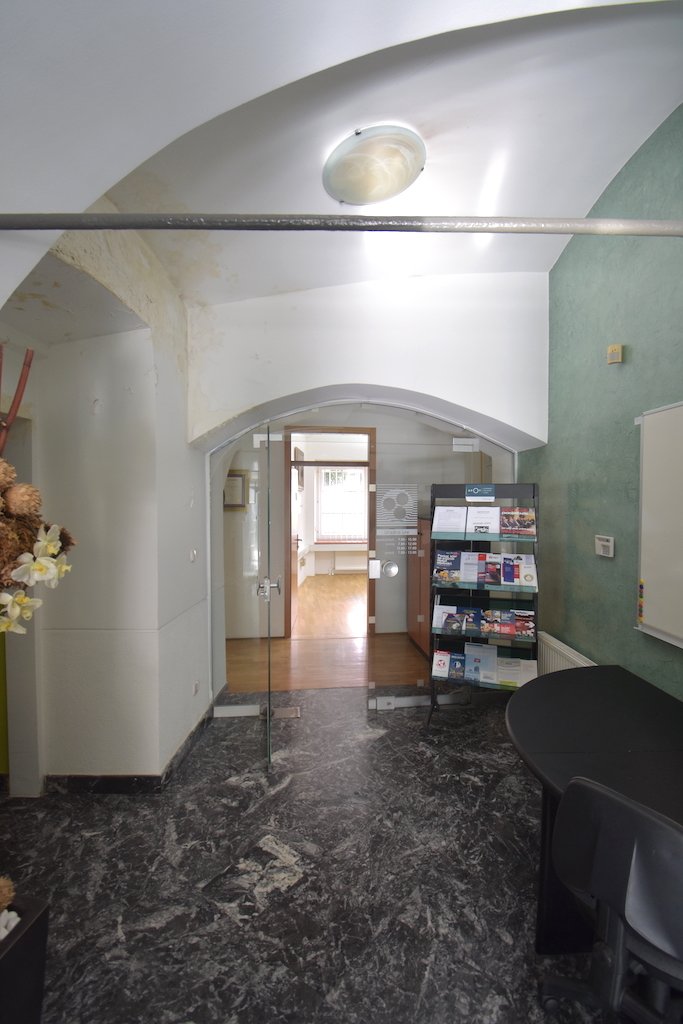 - Pritličje: poslovni prostor v izmeri 74 m2. Poslovnemu prostoru pripada dodatnih 12 m2 zasteklenega vhoda – skupaj 86m2