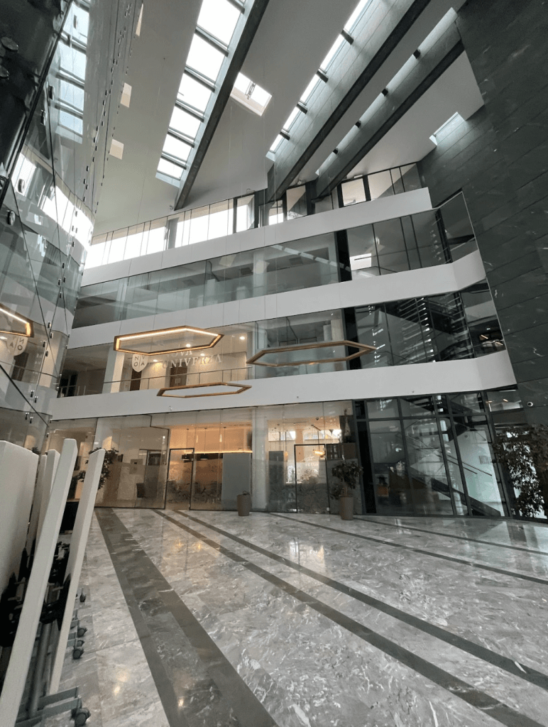 Stavba ima atraktivno recepcijo. Ima vse priključke, potrebne za sodobno poslovanje, kot so ogrevanje in hlajenje z regulacijo v vsakem prostoru. Na voljo je parkirna hiša za nejemnike in zunanje parkirišče za obiskovalce.