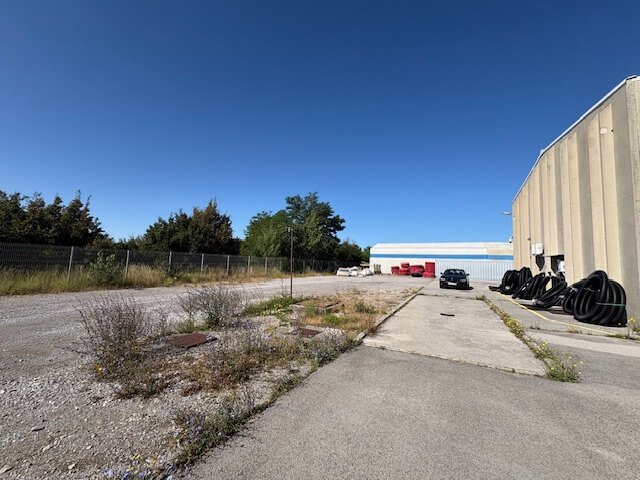 Celotno zemljišče meri 8.527 m² in nudi dovolj prostora za parkiranje tako tovornjakov kot osebnih vozil.